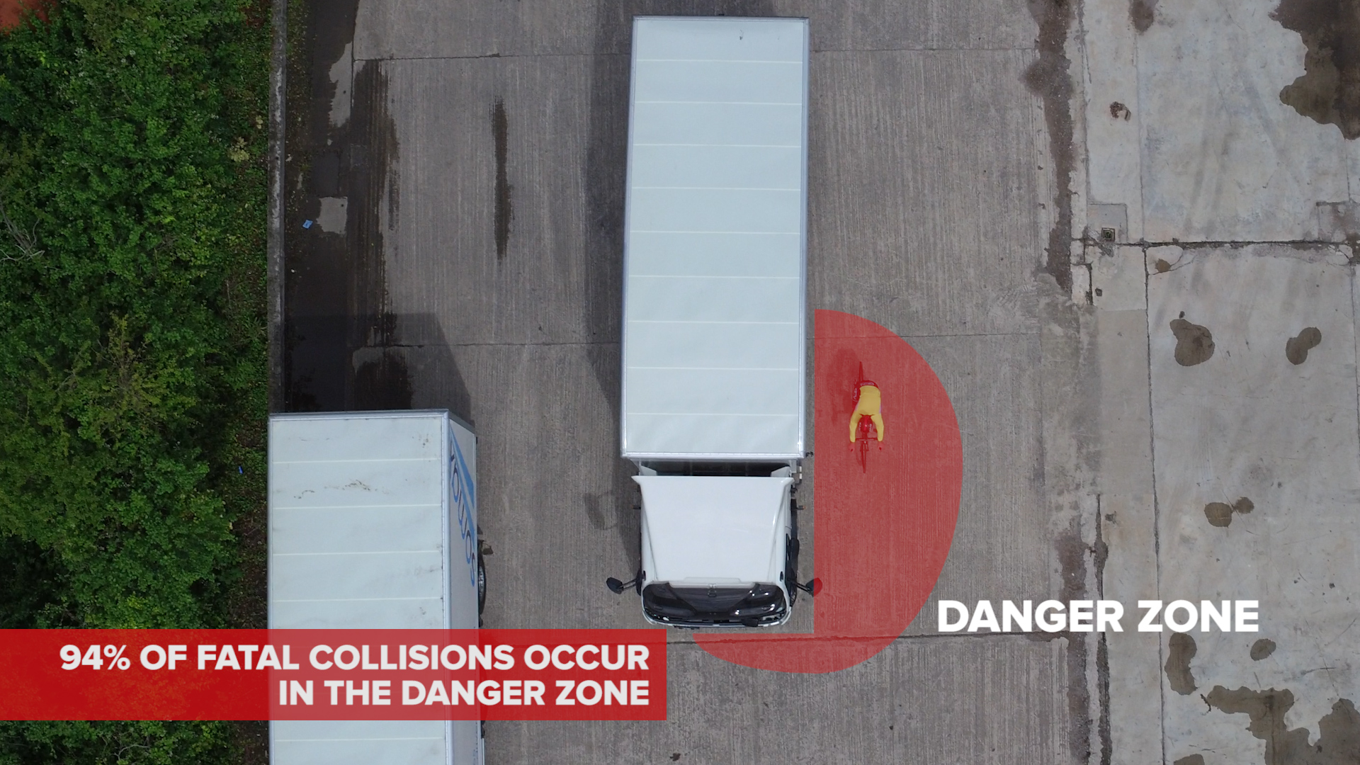 The aim of THINK!’s latest campaign is to raise cyclists’ awareness of the dangers of lorries turning left – the area where a third of collisions between cyclists and lorries happen.
